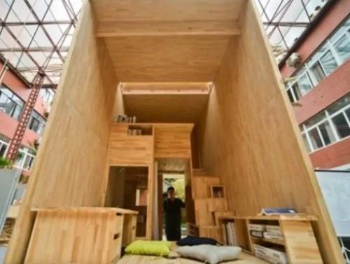 这是由重庆大学建筑城规学院12名本科生设计建构的1:1实体住宅模型。