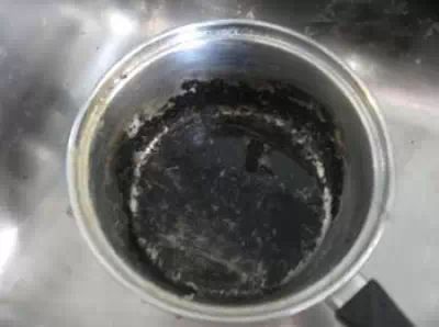 有时候锅底会出现一薄层黑色物质,很难清洗掉。这是由于过度烹煮或高酸性食品所引起的变色。为了消除顽固黑斑,恢复原锅新貌,只用向其中倒入一罐可乐(或者只要刚好覆盖着变黑的地方就行)然后放在小火的火炉上。大约一个小时之后,像平常一样把锅清洗干净就行了。