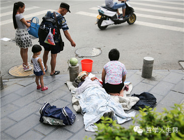 12在吆喝了一个多小时后,妇女将地上的老人叫起,换班休息。