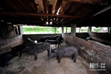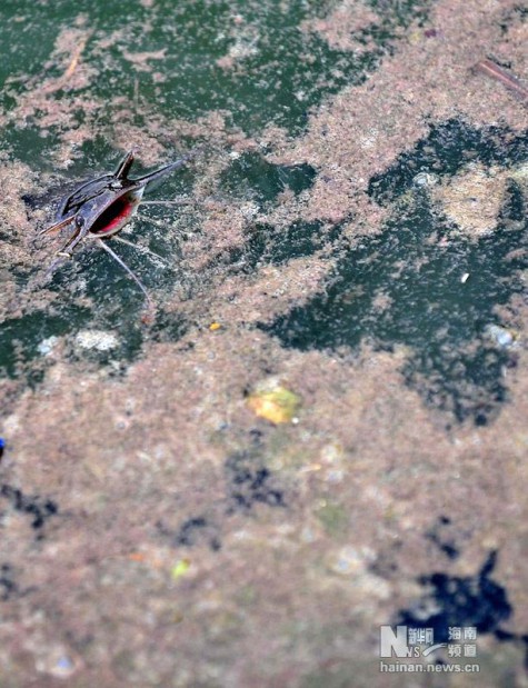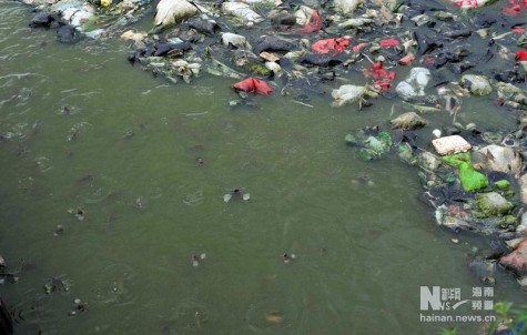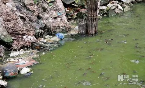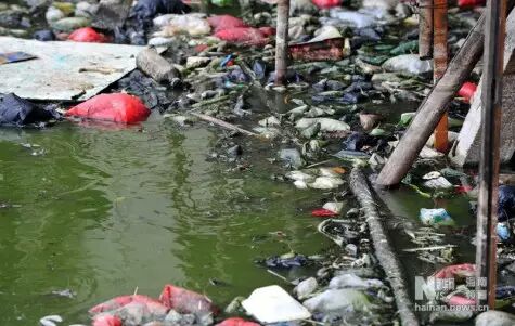 在海南省海口市坡巷路有一条不起眼的小道,内进50米有7口大大小小的鱼塘。鱼塘周围被鸡圈和猪圈环绕,塘中漂浮着大量垃圾,恶臭扑鼻。密密麻麻的鲶鱼在水中游动。这些鱼塘已经存在了十余年,猪粪、鸡粪和周围养殖户厕所排出的粪便都排进鱼塘。