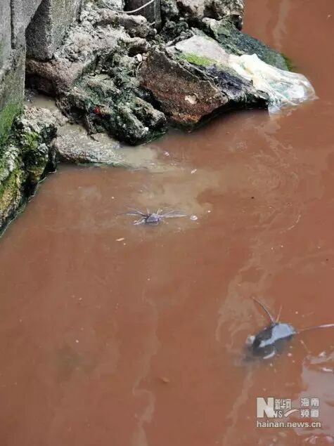 密密麻麻的鲶鱼在垃圾中找寻食物。↓↓↓