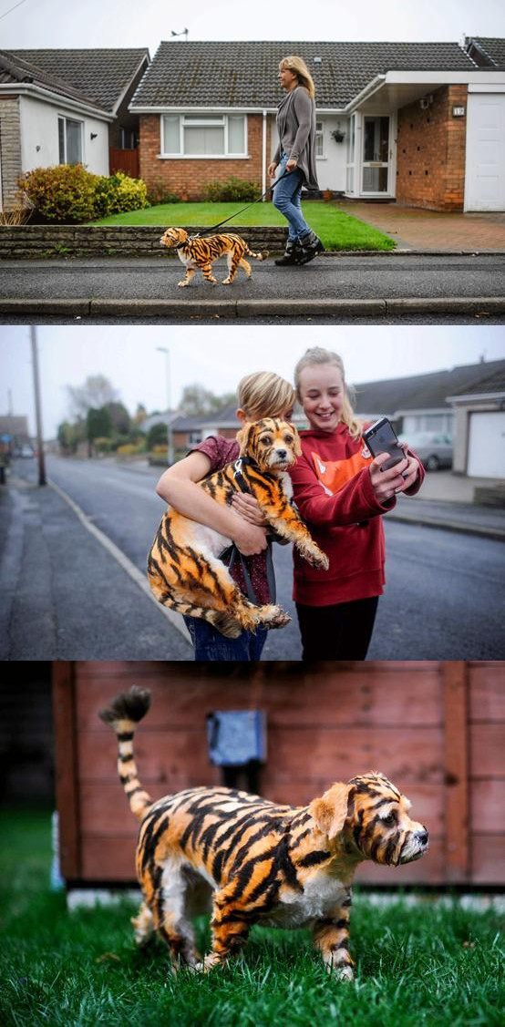 据英国《每日记事报》报道,英国一女子日前用特殊染料将自己的宠物小狗全身涂满老虎斑纹,俨然一只小老虎。在她领着“小老虎”外出散步时,路人纷纷聚拢过来,为其拍照。