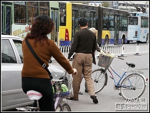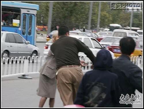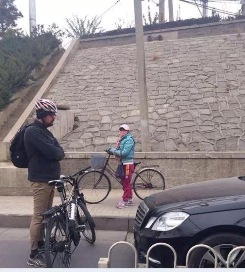 见外国女士仍无退让之意,蛮横的司机冲上前去,拿起老外的自行车扔在一边,并高喊:再不让路把你自行车砸烂!