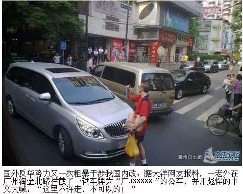2011年4月,广州淘金北路上一辆公车逆行,也是一个老外拦住他,对他用中文说:这里不许走,不可以的。