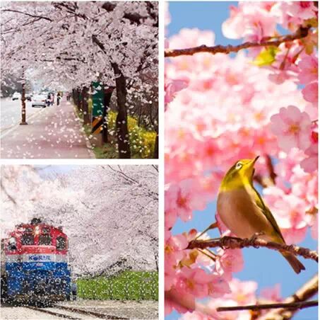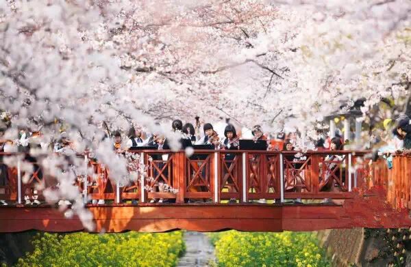 另一个推荐地是庆尚道的镇海市,整个市区都是赏樱花的胜地,还是很多韩剧的取景地。其中最著名的是安民大道、文化街、海岸观光大道以及丽左川大道。特别是丽左川大道,漫步在樱花飘零的街桥上,不时会淋一身花瓣雨,浪漫无限。