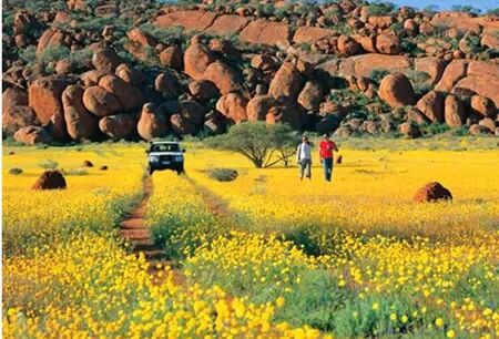 春天到珀斯,最可以见识到西澳人的浪漫和闲情,遍地野花构成一幅叫人眼花缭乱的图景。公园里满园春色,处处可见姹紫嫣红的野生雏菊,西澳的野花不见跋扈的大红大紫,淡淡的,粉粉的色彩,却怡然挥洒成漫山遍野的妩媚。
