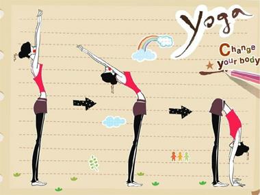 最后身体后仰,再向前曲体,伸手朝脚趾的方向碰(做不到的不要勉强),头部抬起更好。