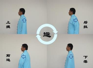 2.运肩拔背松筋脉,前运后运各5~6次。