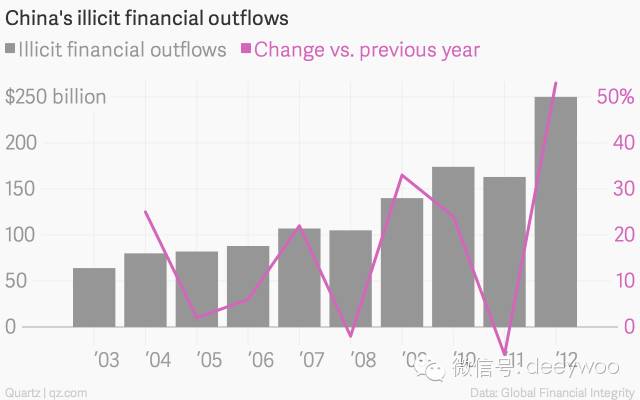 (在2000至2011年间共有约3.75万亿美元的非法现金流流出中国)