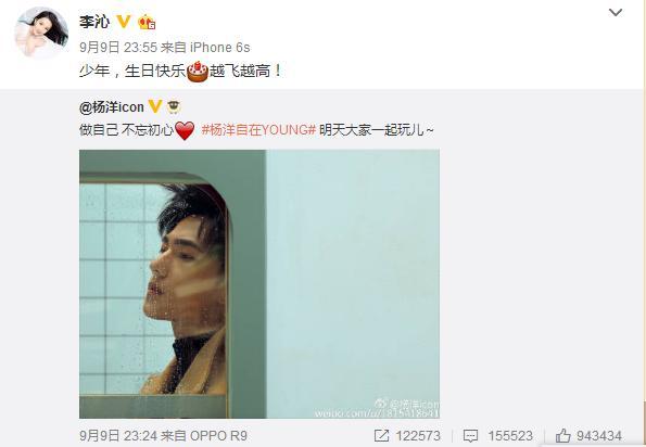 仔细一看才发现,原来杨洋生日的时候,除了前女友李沁,竟然没有人为他送上生日祝福。这一点想一想也是不明白呢。翻找了一下,除了杨洋的粉丝在疯狂刷屏祝福他生日快乐以外,就是一些官微了。