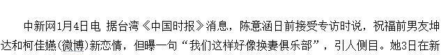 两人是在去年五月底一起去看NBA时,被粉丝再次爆料已经恋爱的关系,陈意涵当时也发微博算是默认这一段感情