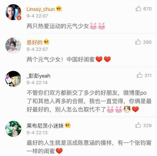 看到两位好朋友一起“秀恩爱”,网友评论也多是“中国好闺蜜”惹人称羡