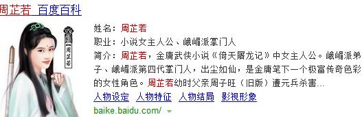 当年,马景涛版本的《倚天屠龙记》,大家都不接受叶童饰演的赵敏,却难得一致地认同周海媚饰演的周芷若。直到现在,周芷若的百科头像,都是周海媚版的画像。