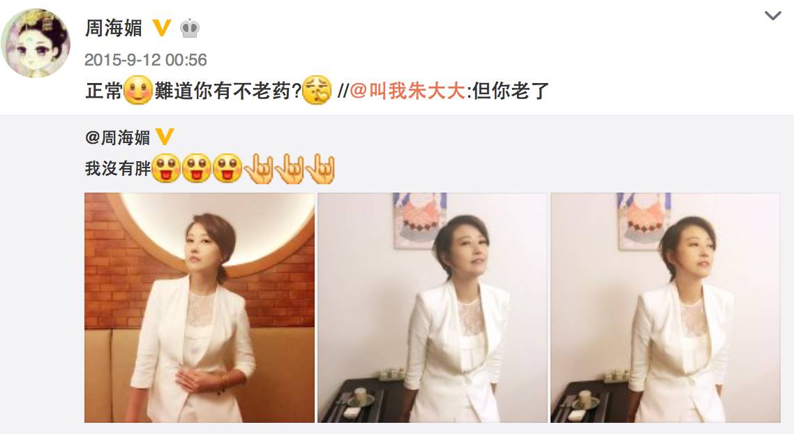 看到周海媚,才知道优雅的老去并不是永远保持容貌年轻的状态,而是无论什么年纪,无论是皱纹亦或美貌依旧,都遵从自己的步调生活。