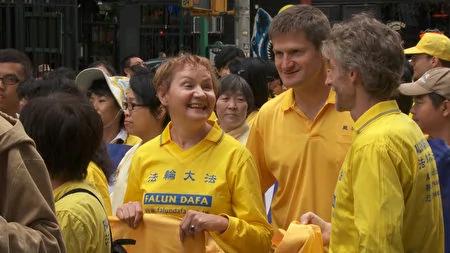 芭芭拉‧舍费尔(左)在纽约参加法轮功游行。(Photo by Oliver Trey)