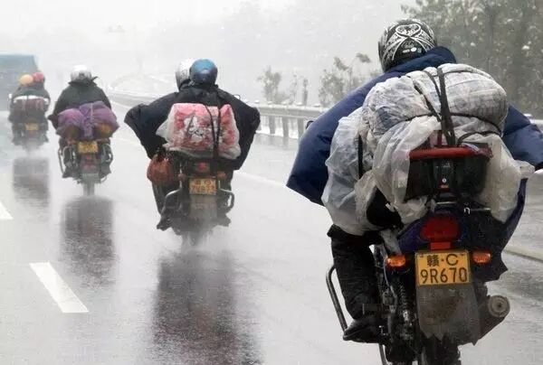 骑摩托车回家的情况,大家可能在新闻里看到了。每年过年,总有摩托大军回家过年。我的一个表哥,每到过年时就让他的儿子坐汽车回家,而自己骑摩托车带老婆回家,路上要两天一夜。