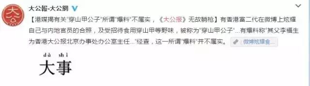 针对有人爆料的,李加和父亲李福生疑似香港《大公报》北京办事处办公室主任,此说也迅速被官博“大公报-大公网”迅速否认:不属实,无故躺枪。