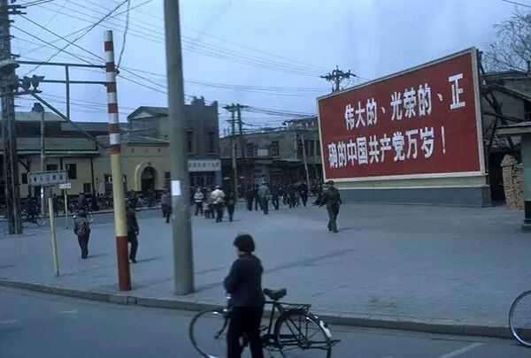 1972年,北京,大街上的标语“伟大的、光荣的、正确的中国共产党万岁”。威廉·约瑟夫/摄。