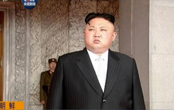 朝鲜最高领导人金正恩身穿西装出席太阳节阅兵,一改以往穿中山装的传统。(网络截图)