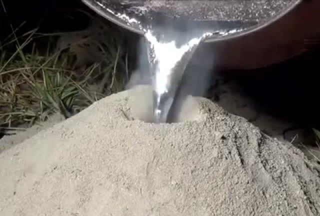 据视频,由Luis Forgi教授领导的科学家总共准备10吨水泥,共耗费了10天才完全将这个蚁穴灌满。在等待一个月后,科学家组织人员将水泥块挖出来,结果发现蚁穴内的通道覆盖了500平方米的区域,深度达地面下斤8米。而挖出来的土也超过了40吨。