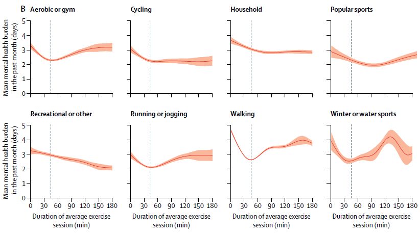 首先明确一点,对抑郁、压力等精神问题来说,他们的统计结果显示,无论选什么类型,锻炼永远比不锻炼好——