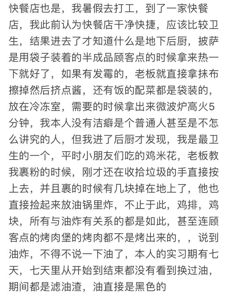 甚至一些快餐店都不靠谱