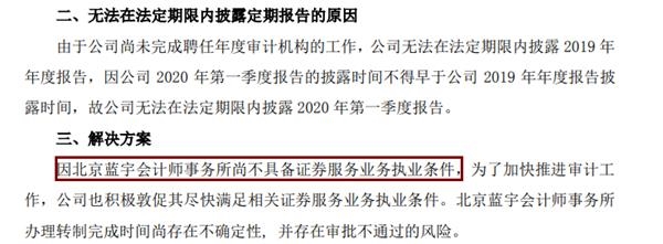 之所以尚未完成年审机构的聘任工作,神雾环保给出的原因很罕见,即公司计划聘请的北京蓝宇尚不具备证券服务业务执业条件。