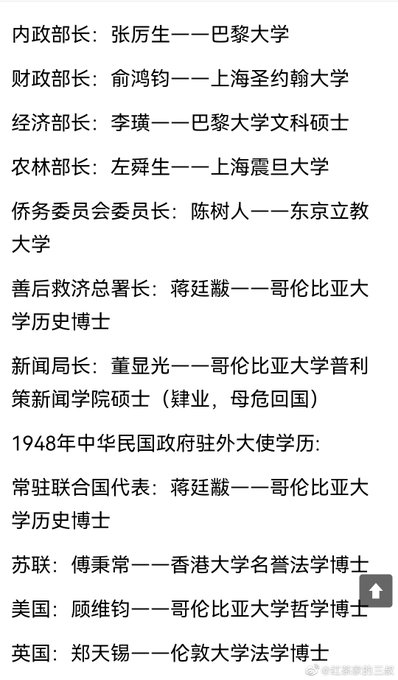 红茶家的三叔:一九四八年,国民政府主要官员的学历表