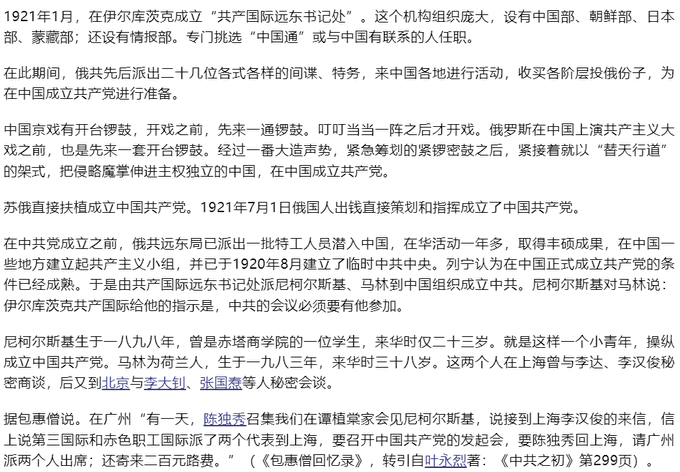 俄共用一百五十元现大洋,买一位中共一大代表:为召开中共“一大”,马林带来活动经费,给“一大”每位代表一百五十元现大洋。先发一百元,临回去时,再发五十元。怕这些“一大”代表,在上海十里洋场胡乱花钱,对他们不放心,担心他们回程时没有路费,困在大上海。所以没有把一百五十元,一次全发给他们