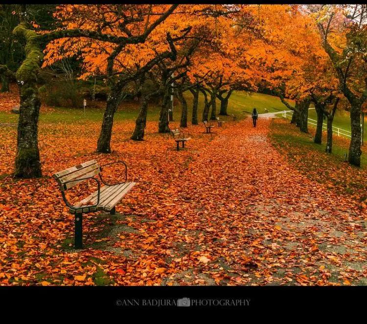 这座温哥华的标志性公园一年四季都景色迷人,但秋天更增添了它的光彩。史丹利公园的步道变成了橙色和红色树叶的隧道,海堤在水面上闪烁的金色光芒中闪闪发光。