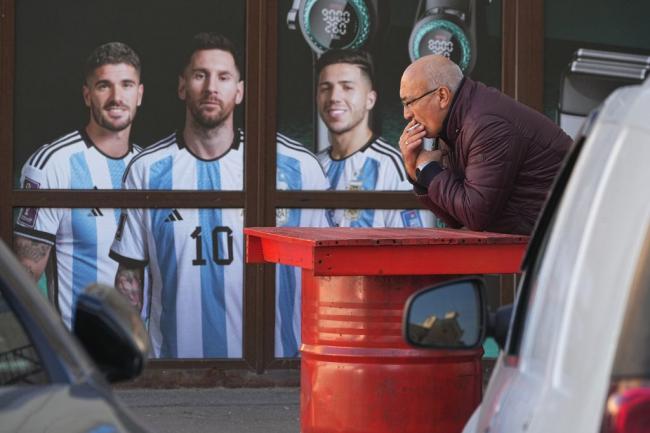 2025年10月1日。一名男子坐在俄罗斯圣彼得堡的路边抽烟。(AP)