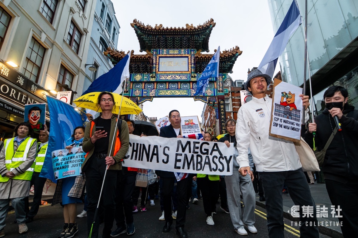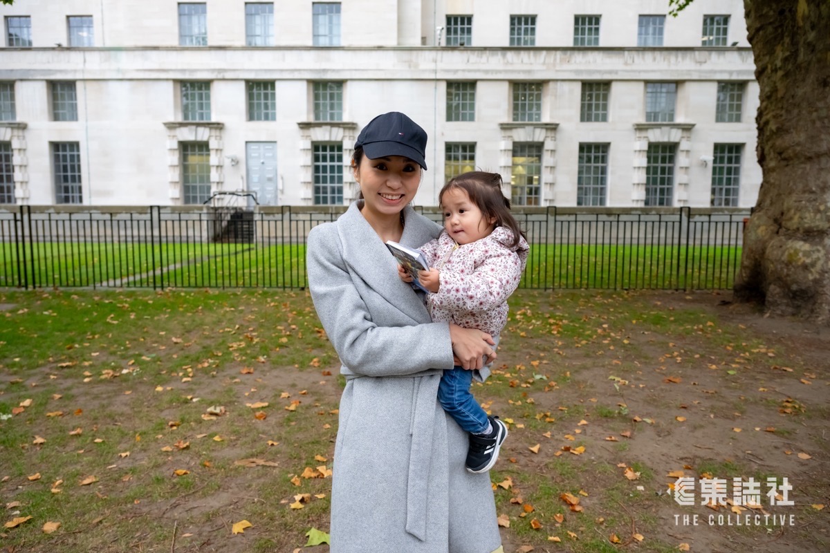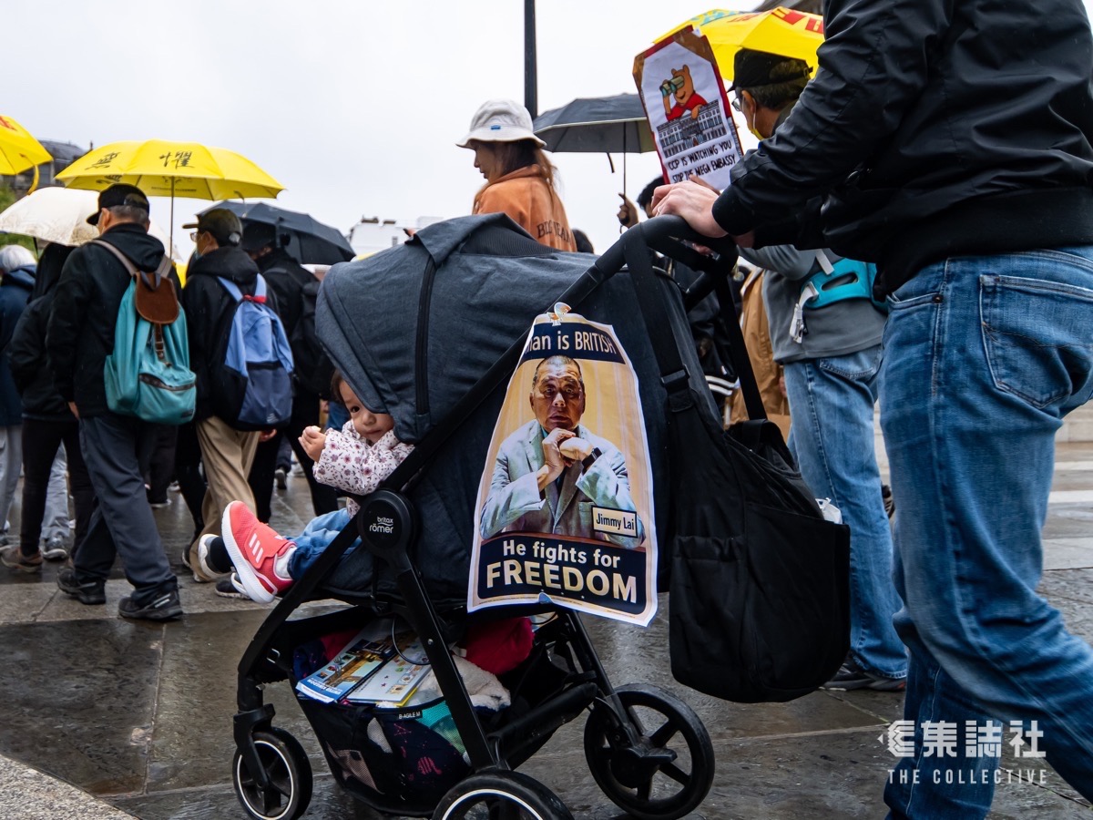 30多岁的何小姐和丈夫,加上两名年幼女儿一同参与游行,两人一个抱着幼女、一人推着婴儿车,一家四口冒风雨走足全程,又将写有“释放黎智英”的英文文宣贴在婴儿车上展示。何小姐指感谢仍有人愿意筹办游行,相信每次在英港人与各地离散族群聚在一起发声,会积沙成塔影响英国政府及本地居民想法,“至少从最初的消息指英国政府为计划‘开绿灯’,到延迟决定后向中国大使馆提问,要求他们交代更多改建大使馆(图则)的细节,为何有些细节被隐藏,所以我觉得是有延阻(计划)的作用。”