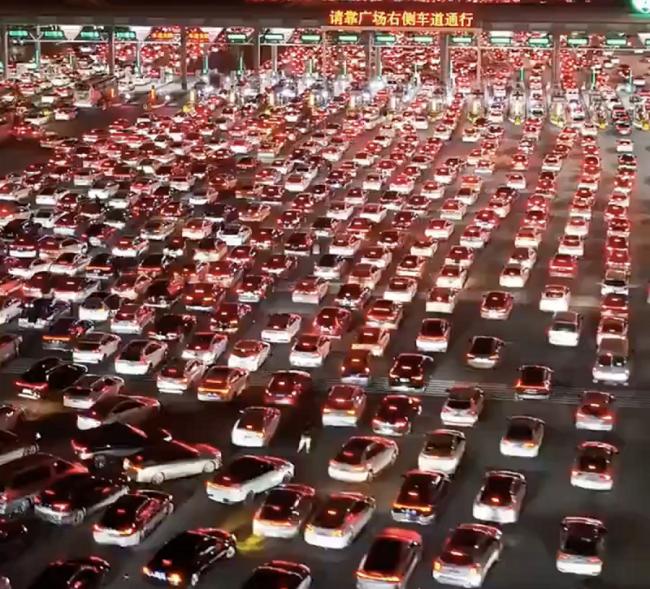 《NEXTA》昨(2)日报道,中国本月1至8日国庆长假才刚开始,就有数百万人陷入大规模的车龙。图:撷取自《NEXTA》的 X
