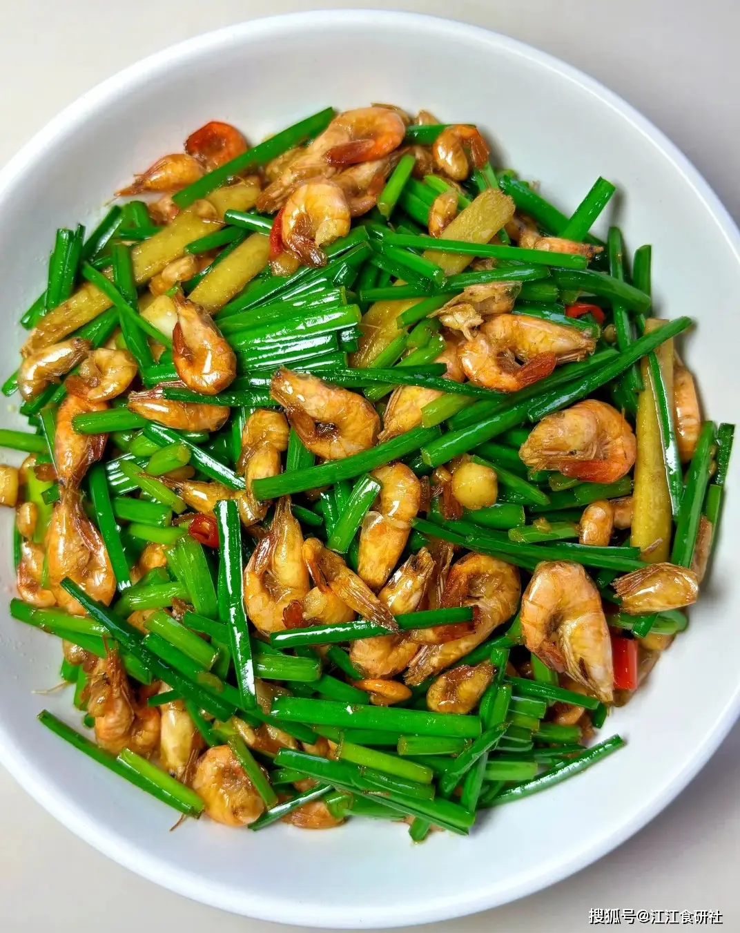 “韭菜又名'起阳草',搭配河虾的温阳之性,能唤醒秋乏的身体。这道菜带着锅气吃最好,就像把阳光的能量吃进肚子里。”