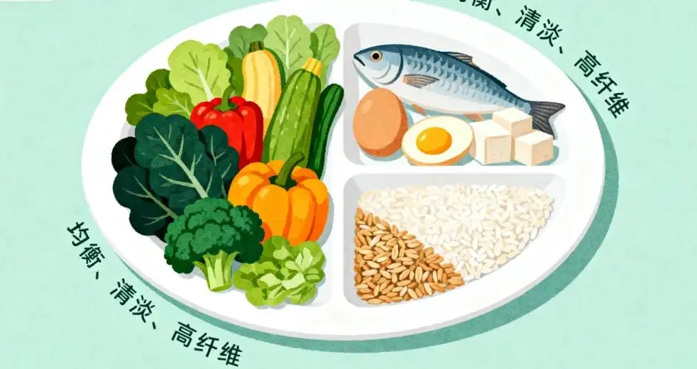 饮食的核心原则是:均衡、清淡、高纤维、低糖低脂,既能控制血糖血脂,又能给神经和血管提供营养。