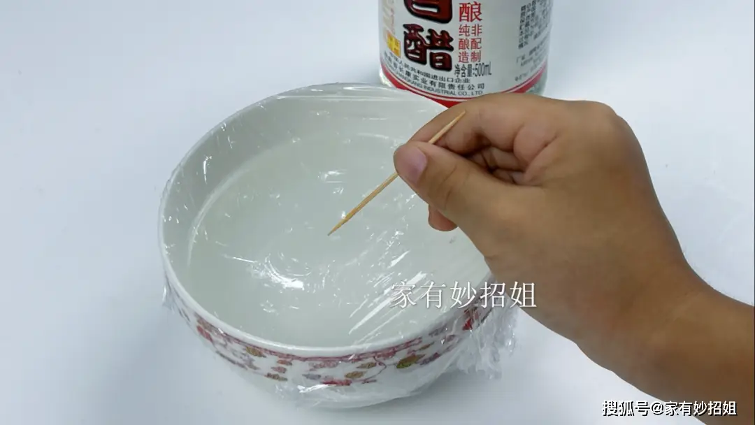 我们先拿个碗,然后在碗里倒入小半碗的白醋,接着用保鲜膜将碗口覆盖起来并用牙签在上面扎上一些小洞,接下来再将这样一碗白醋水直接放冰箱的角落就可以了。白醋的主要成分就是醋酸是弱酸性的物质,它就能和冰箱里异味分子的碱性物质发生反应,从而减少冰箱里的异味。不仅如此,醋酸还能破坏细菌的细胞结构,抑制冰箱里的微生物繁殖,从源头解决冰箱的异味问题。此外,我们在清洁冰箱的时候也可以选择用抹布倒点白醋去擦拭,它除味杀菌的作用还能把冰箱清洁得更加干净。