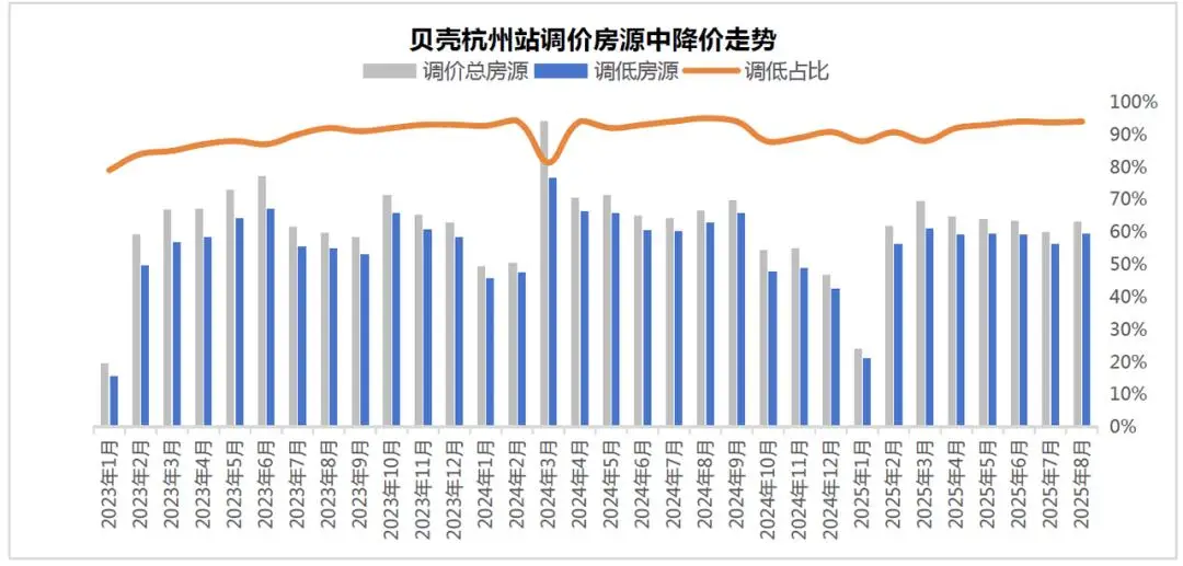 第二,当下杭州挂牌二手房中的调价房源,94%在降价。