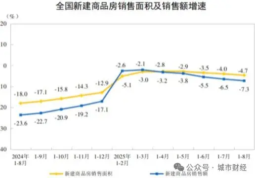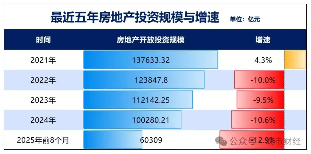 这一数值自2022年4月份转负以来,就一直没有回过正。2022年下降10%,2023年下降9.5%,2024年下降10.6%。2025年前8个月下降12.9%。