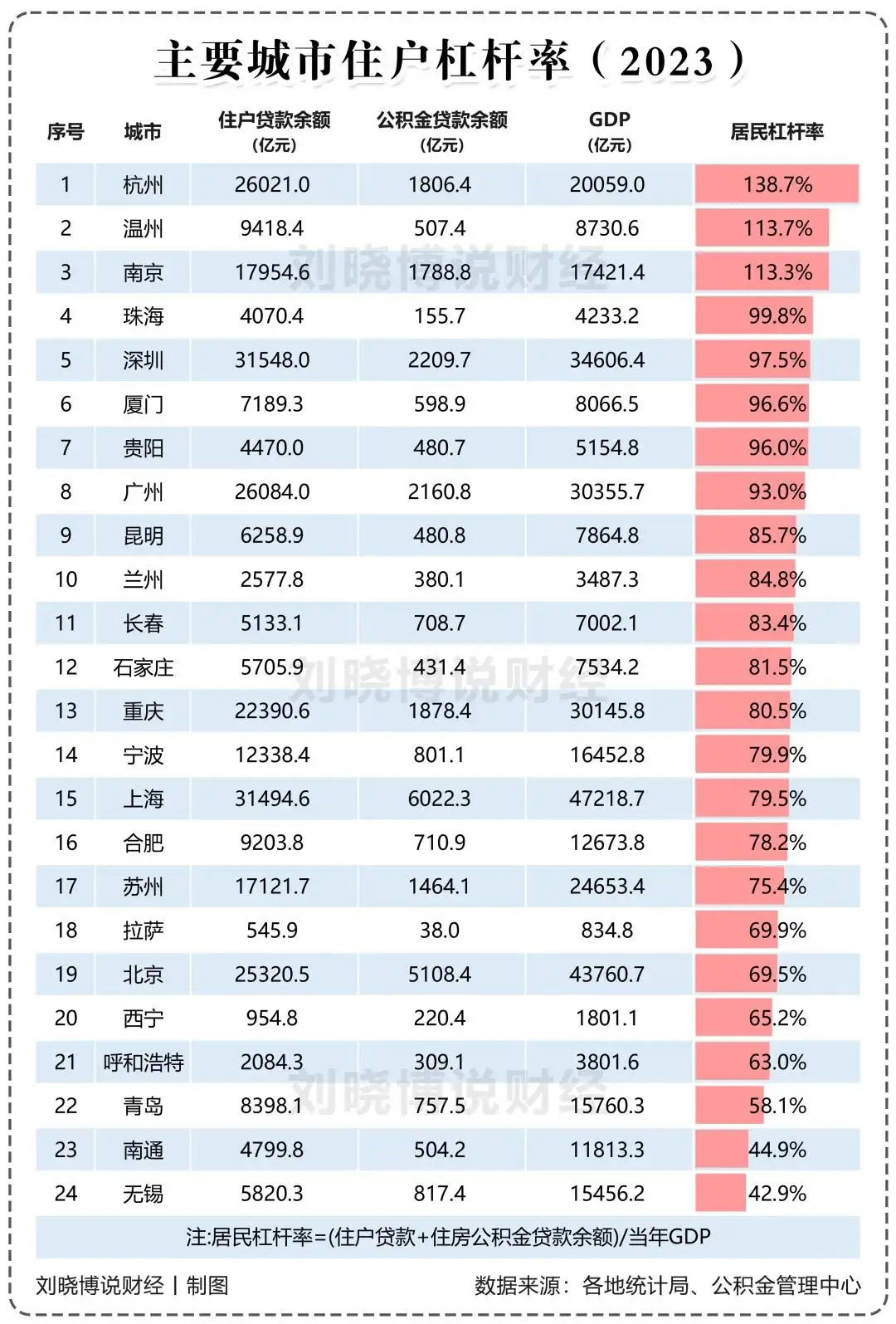 从各城市的居民杠杆率来看,杭州是炒房最疯狂的城市,早就取代深圳,成为了炒房第一城。