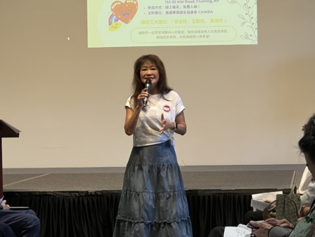 这场讲座是由“华裔妇女协进会”(CAWBA)主办的。该会会长谢嘉燕在会上与大家分享了她的“腹式呼吸法”,可以在有压力或者愤怒的时候用来缓解负面情绪。