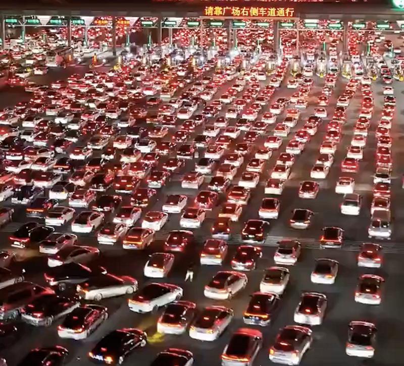 《NEXTA》昨(2)日报导,中国本月1至8日国庆长假才刚开始,就有数百万人陷入大规模的车龙。图:撷取自《NEXTA》的 X