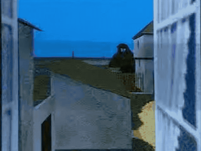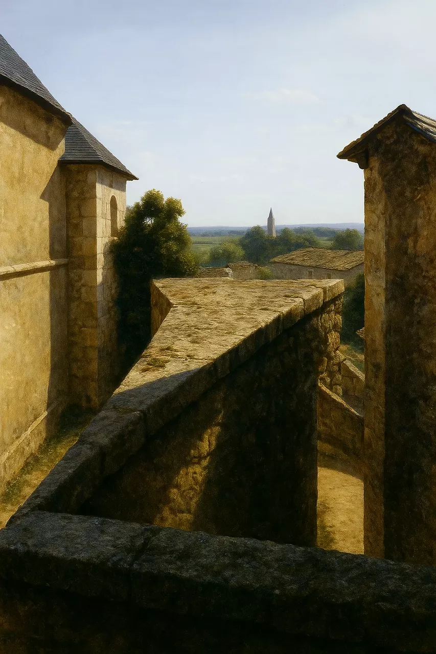 相比 GPT-4o,《勒格哈的窗外景色》在 Flux模型的复原中,被处理成了一座被遗弃的历史遗址,屋顶只剩下零星红瓦,仿佛早已被风雨和时间掏空。