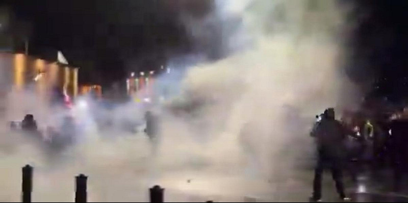 晚间局势急转直下,警方开始采取强制驱离行动,动用催泪瓦斯与高压水柱驱散人群,多名示威者遭逮捕或受伤。部分抗议群众则在街头筑起临时路障,并焚烧俄罗斯国旗,以表达对亲俄政策的强烈不满。