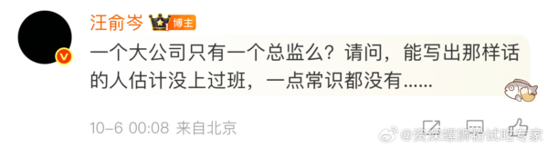 一名网友想要一张狗狗的照片作为证据,汪俞岑的回复引发很多人的不满。汪俞岑与天娱传媒的关系也进一步曝光,汪俞岑是天娱传媒影视事业中心总监等职。不过,汪俞岑疑似就此回应称,天娱传媒并非只有她一个总监。