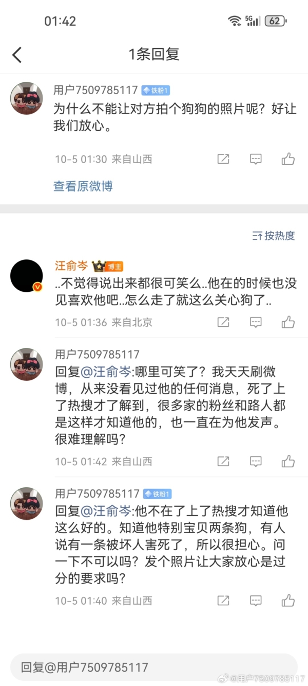 汪俞岑回复网友的追问,引发不满。(网络截图)