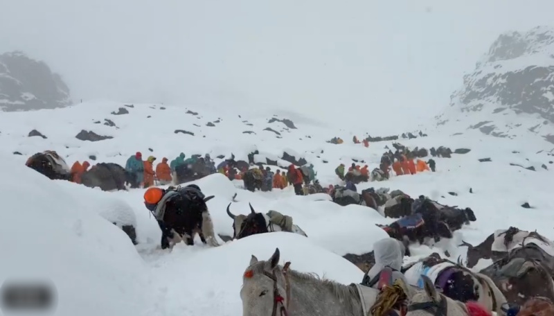 2025年10月5日,珠峰突降暴雪,近千名游客被困,生死大逃亡。(视频截图)