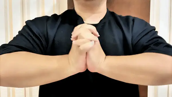 鱼际相扣:在掌根碰撞的同时,双手手指自然弯曲,用双手的“鱼际穴”(手掌面大拇指根部那块隆起的肌肉)相互扣击。
