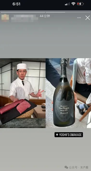 《每日邮报》近期找到了杨兰兰的Instagram账号,发现她曾在Yoshii's Omakase用餐,并晒出了价值1000澳元的Dom Pérignon香槟。