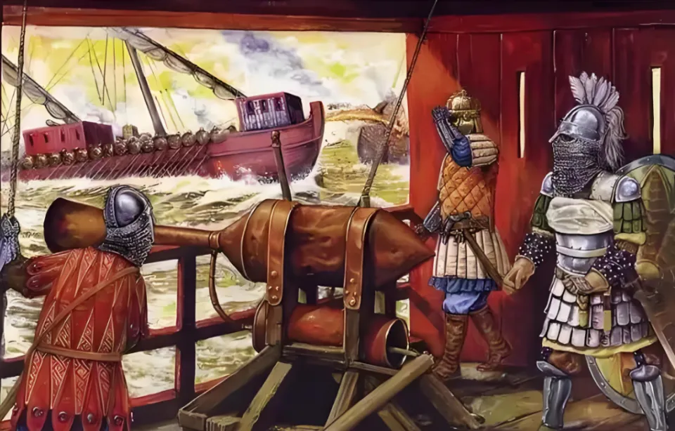 拜占庭海军用“希腊火”击败阿拉伯海军