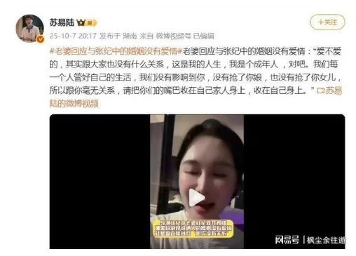 张纪中老婆回应婚姻没有爱情:爱不爱的,其实跟大家也没有什么关系